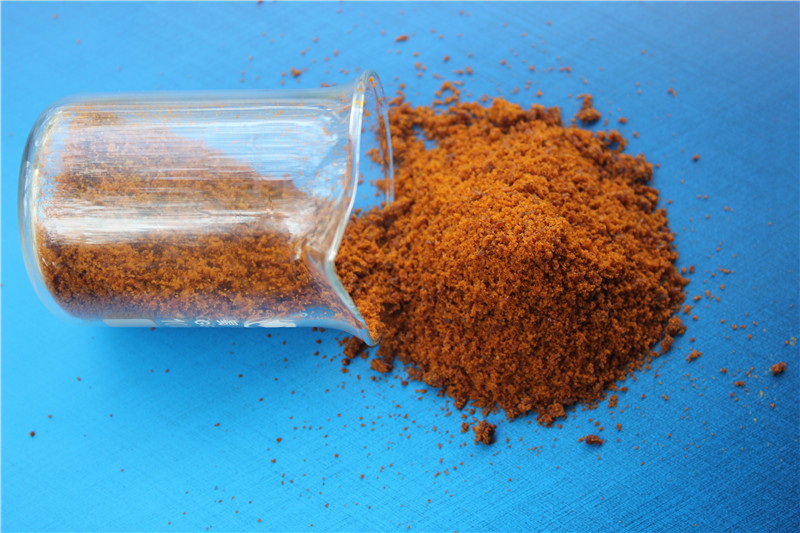 3、聚合氯化鋁鐵固態產品為黃褐色粒粉狀,極易溶于水。